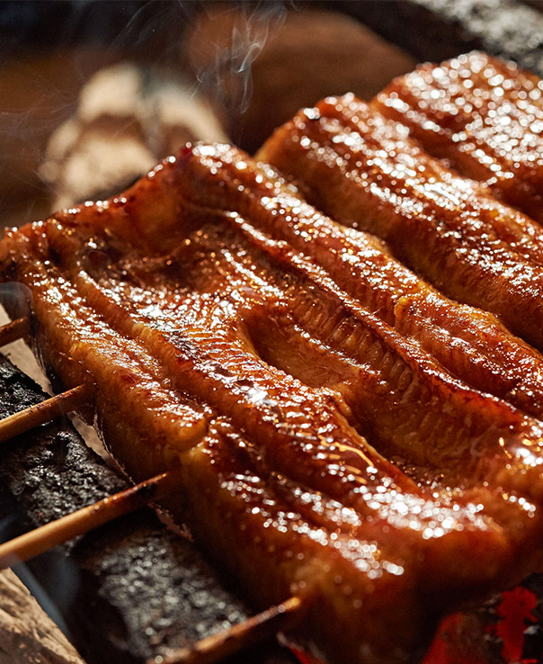 (Grilled Eel Over Rice) - Enjoy our Unaju made from eels selected from across Japan. The eels were carefully grilled to produce a thick, fluffy, and tender flavor. Our secret sauce's clean, sharp, and spicy flavor also enhances the eel's natural taste. This dish creates a perfect harmony with the hard-cooked Koshihikari rice.